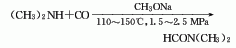 2、二甲胺-一氧化碳法:由二甲胺與一氧化碳在甲醇鈉作用下,直接反應(yīng)而得。反應(yīng)條件是1.5-2.5mpa和110-150℃。粗品經(jīng)精餾制得成品。