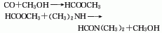 3、由一氧化碳和甲醇在高壓和80-100℃溫度下經(jīng)羰基合成得甲酸甲酯,然后再與二甲胺反應(yīng)生成二甲基甲酰胺,精餾后得到成品。